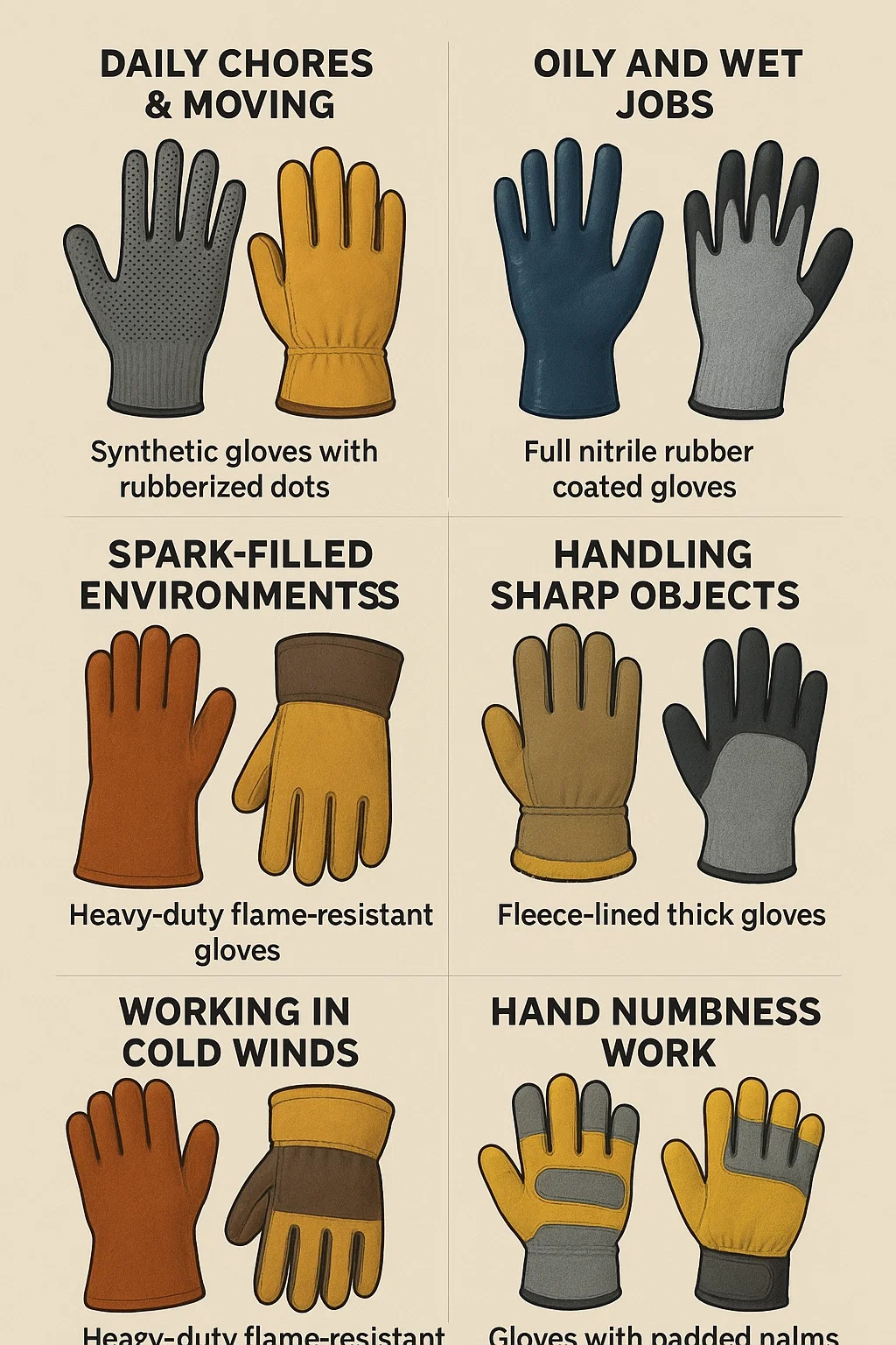 Walang isang laki-umaangkop-lahat ng sagot kapag pumipili ng tunay na mabuti guwantes sa trabaho —Ang pinakamahusay na pares ay nakasalalay sa trabaho na iyong ginagawa. Ang susi ay upang mahanap ang pinaka -angkop na proteksyon at pag -andar. Narito ang mga ginustong uri para sa mga karaniwang sitwasyon: